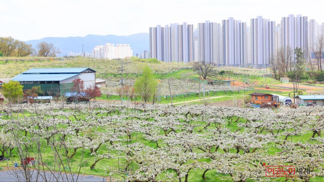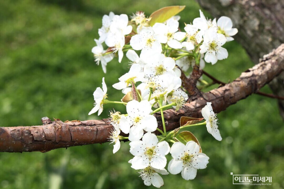 [이코노미세계]경기도 안성시가 봄의 절정을 맞아 배꽃이 만개하며 시민과 관광객들에게 새로운 볼거리를 제공하고 있다. 김보라 안성시장은 24일 자신의 페이스북을 통해 “벚꽃이 지고 배꽃이 한창”이라며 안성의 봄 풍경을 소개했다. 김 시장은 “주말마다 내린 비로 벚꽃을 만끽하지 못하셨다면, 배꽃나들이를 추천드린다”며 “요즘 안성의 산, 호수, 들녘은 그림 한 폭과 같다”고 말했다.