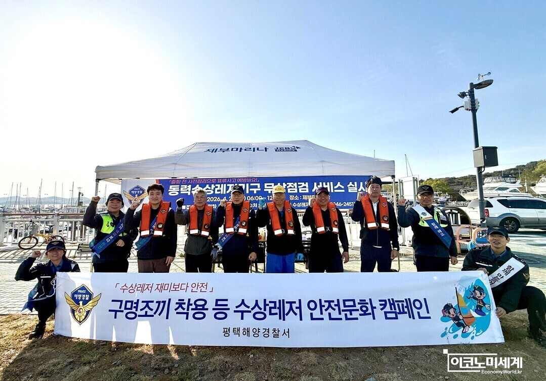 [이코노미세계] 경기도 평택항만공사가 본격적인 해양레저 시즌을 앞두고 수상 안전사고 예방에 나섰다. 경기평택항만공사는 24일 경기도 화성시 소재 제부마리나에서 평택해양경찰서, 한국해양교통안전공단과 함께 ‘2026년 제부마리나 동력수상레저기구 무상점검 및 안심 운항 캠페인’을 개최했다고 밝혔다.