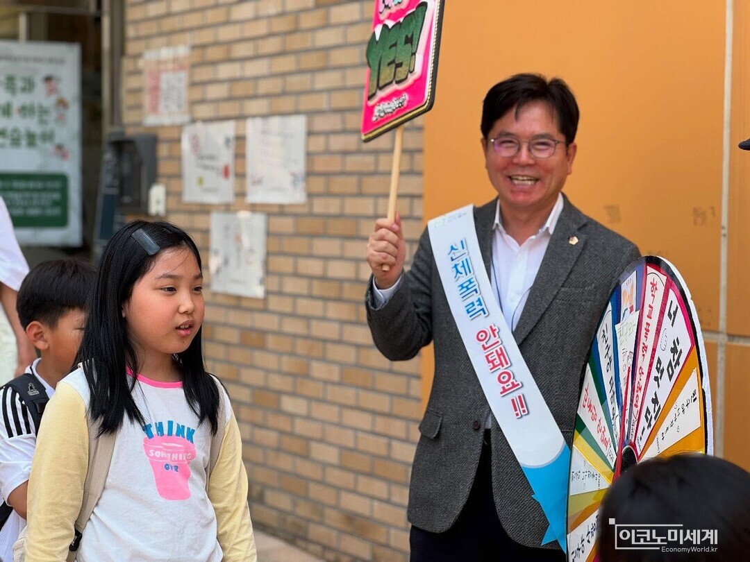이어 방문한 신우초등학교 앞에서는 학부모들과 함께 ‘학교폭력 없는 안전한 하굣길 만들기’를 주제로 한 캠페인에 참여했다. 형광 조끼를 입은 학부모들과 함께 교통지도 및 학생 인도 활동을 펼치며 학생들에게는 “차 조심, 친구와 사이좋게”라는 따뜻한 인사도 건넸다.