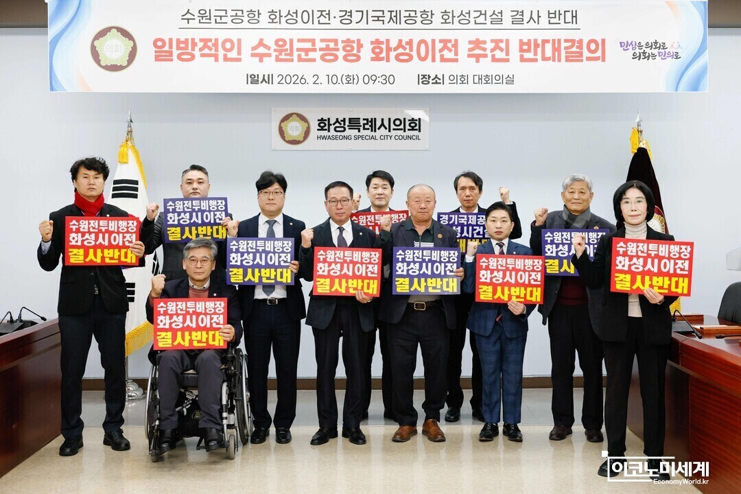 [이코노미세계 = 김병민 기자] 수원 군공항의 화성시 이전을 둘러싼 갈등이 다시 격화되고 있다. 수원시가 군공항 이전을 ‘국가전략사업’으로 격상해 정부 주도로 추진하겠다는 구상을 공식화하자, 화성특례시의회는 이를 “절차적 정당성을 무시한 편법”으로 규정하며 강력 반발에 나섰다.