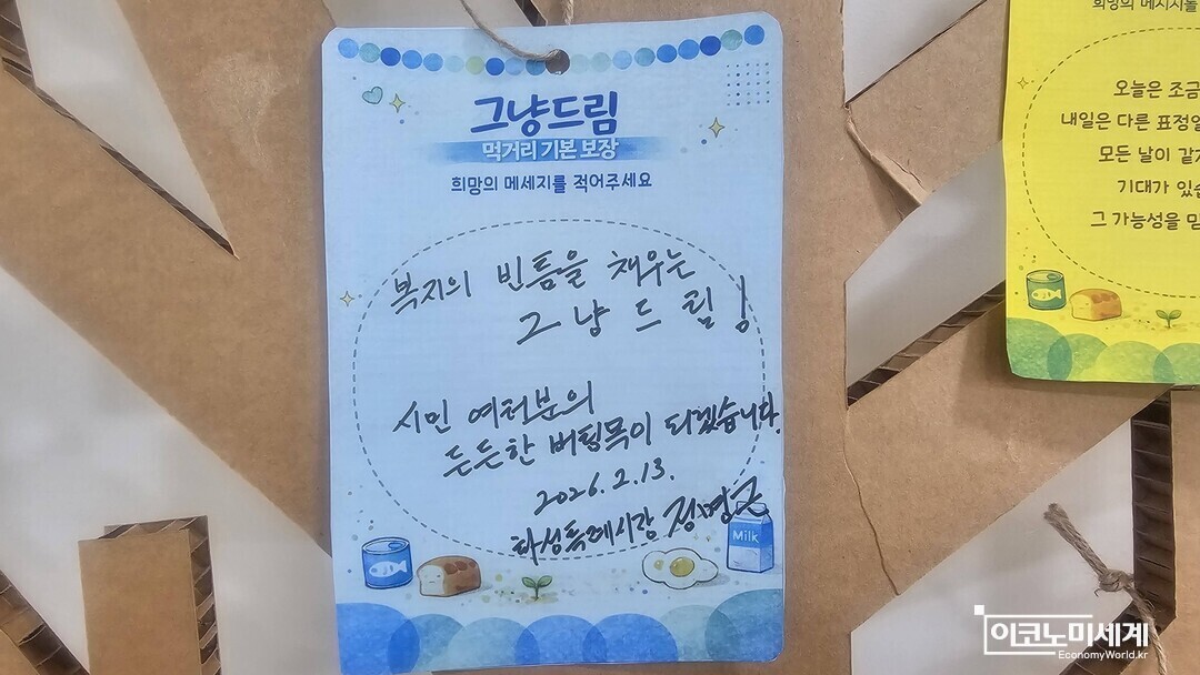 정 시장은 기업 간담회 이후 나래울 종합복지관 내 ‘그냥드림’ 사업장을 점검했다. 해당 공간은 시민 참여 기반 복지 플랫폼 성격을 띤다. 카페 형태의 편안한 공간 구성, 시민 기부와 참여로 조성된 ‘희망 나무’ 등이 특징이다.
