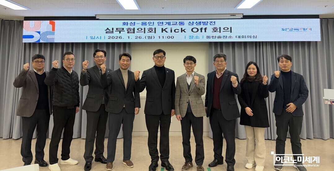 [이코노미세계] 화성특례시와 용인특례시가 행정 경계를 넘어선 교통 협력에 본격적으로 나섰다. 두 도시는 26일 화성 동탄출장소 대회의실에서 ‘화성–용인 연계교통 상생발전 실무협의회’ 킥오프 회의를 열고, 도로·철도 분야 주요 현안을 공동으로 논의하기 시작했다. 지난해 11월 공동선언 이후 약 4개월 만에 실행 단계로 접어든 것이다.
