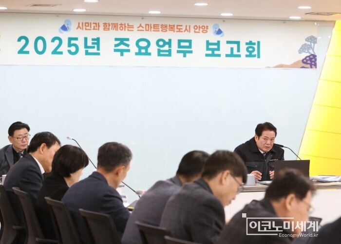 [이코노미세계] 안양시가 2025년 1월 6일과 8일 이틀에 걸쳐 '2025년 주요업무 보고회'를 개최했다. 최대호 안양시장 주재로 열린 이번 보고회에는 실・국・소장 등 10명과 53개 부서장, 9개 공공기관 및 협력기관장이 참석했다.