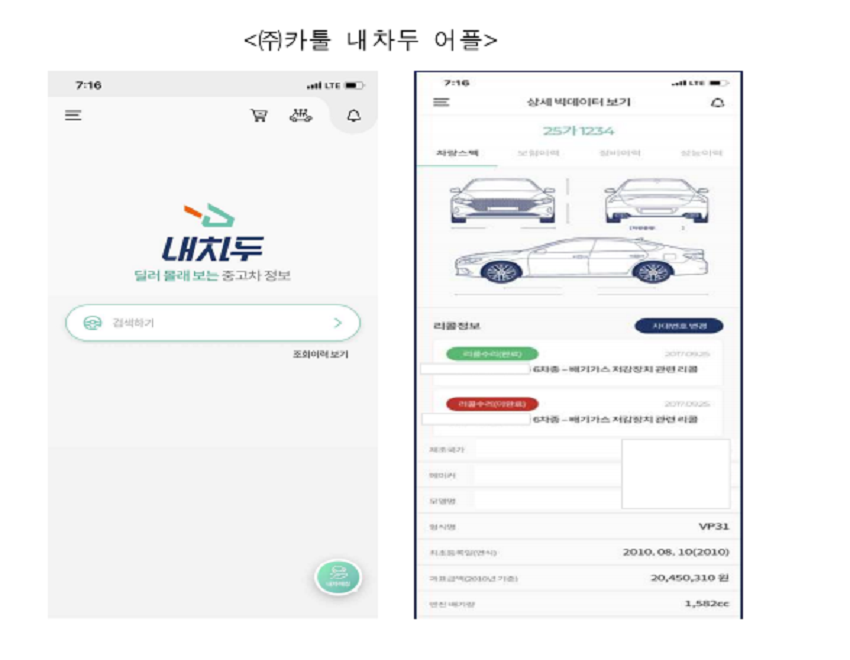 이에 따라, 중고차 구매자는 구매하고자 하는 차량의 리콜정보를, 차량 관리 어플을 사용하고 있는 차량 소유자는 본인 차량의 리콜정보를 해당 어플에서 확인할 수 있다.