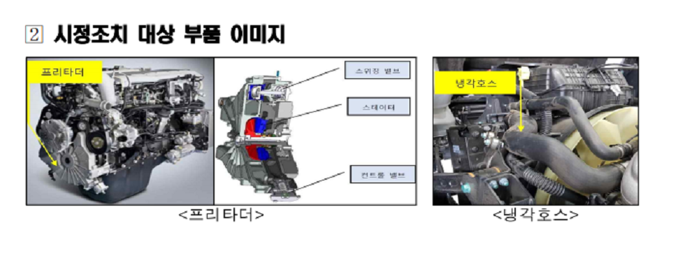 이번 시정조치는 프리타더와 냉각호스에서 확인된 제작결함에 대한 것으로 자세한 내용은 다음과 같다.