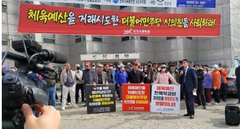 오산시의회 더불어민주당이 전직 더불어민주당 소속 모 도의원의 조카를 보호하기 위해 오산시체육회의 예산을 당론으로 전액삭감 하겠다는 겁박을 했습니다.