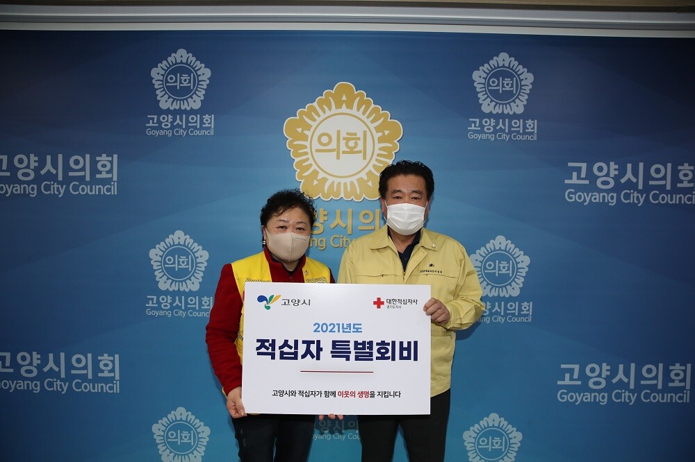 [이코노미세계] 고양시의회는 22일 고양시의회 의장실에서 대한적십자사 경기도지사에게 2021년 적십자 특별회비를 전달했다. 이날 전달식은 이길용 의장을 비롯해 김덕심 의회운영위원회 위원장, 대한적십자사 경기도지사 서북봉사관 최기환 관장과 대한적십자사 봉사회 고양지구협의회 김정희 회장이 참석하였으며 코로나19 사회적 거리두기 방역지침을 준수하여 별도 행사 없이 특별회비만 전달하는 방식으로 간소하게 진행됐다. 이길용 의장은 “매년 어려운 이웃들을 위해 헌신적으로 봉사하는 대한적십자사에 감사 드린다“며, ”코로나19 장기화로 어려운 주변의 이웃을 위해 온정이 많이 모이기를 희망하며 고양시의회도 적십자 활동에 많은 관심을 갖고 지속적으로 동참하겠다.“고 밝혔다. 한편 이번에 전달된 적십자 특별회비는 이재민 구호 및 어려움에 처한 이웃돕기 등 적십자 인도주의 사업에 쓰일 예정으로 고양시의회는 매년 적십자 특별회비를 전달하고 있다.