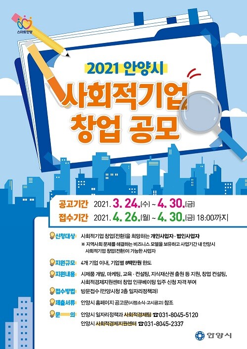 [이코노미세계] 안양시가 24일 금년도 사회적기업 창업 지원을 공고했다.