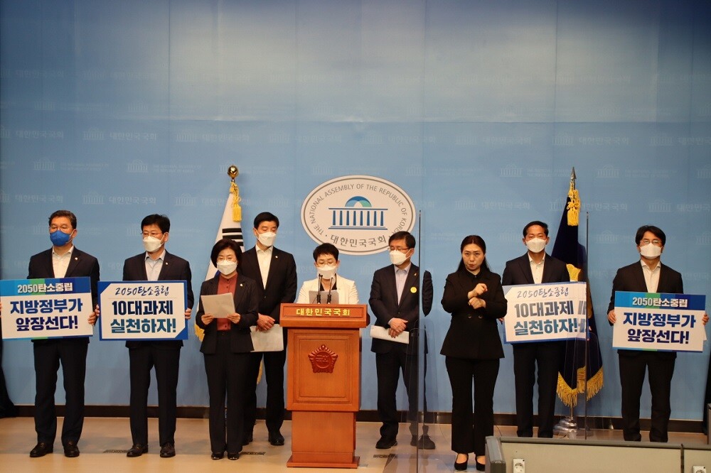 [이코노미세계] 이재준 고양시장이 지난 21일 국회 소통관에서 개최된 ‘더불어민주당 탄소중립특별위원회 지방추진단’ 기자회견에 참석해 ‘탄소중립 사회를 위한 기초지방정부 10대 실천과제’를 선포했다.