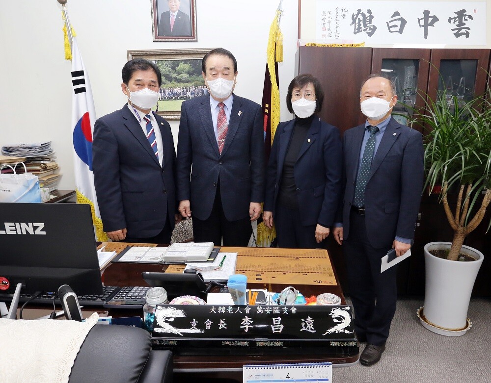 민생행보에 함께한 최우규 의장과 박정옥 부의장은 동안구지회(회장 임헌우)와만안구지회(회장 이창원)를 순차적으로 방문하여 노인복지 현안사항을 청취하고 복지 향상을 위한 심도 있는 논의를 하였다.