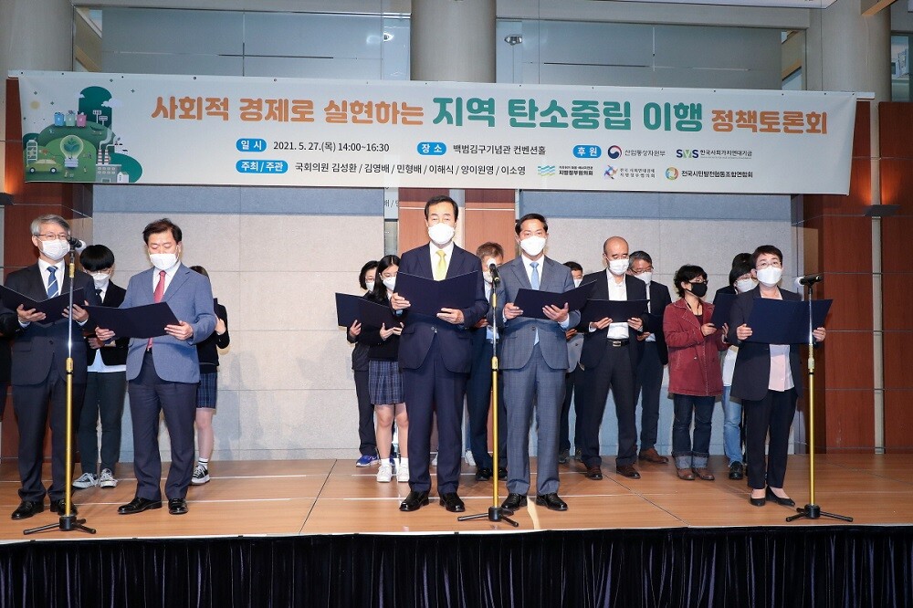 서울 용산구 백범김구 기념관에서 열린 이날 정책토론회는 2050 탄소중립 이행을 위한 에너지전환을 위해 지역에 기반한 사회적 경제의 역할을 제안하고, 기초지방정부, 사회적 경제 기업, 주민 등 다양한 지역주체 간 역할과 협력을 논의하는 자리였다.