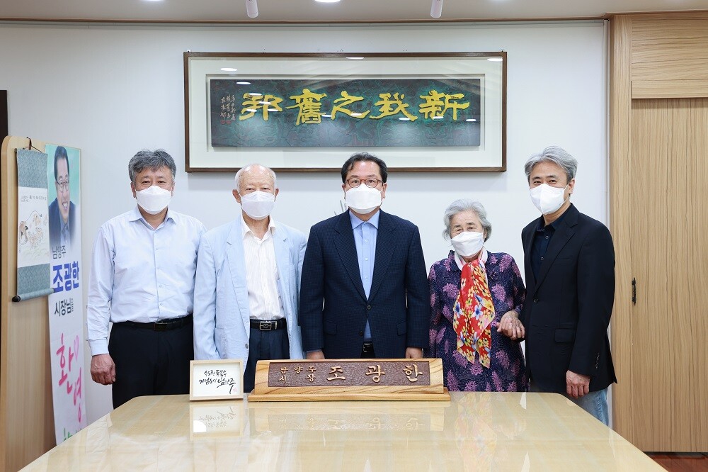 [이코노미세계] 조광한 남양주시장이 지난 11일 집무실에서 시민소식지 ‘열수’ 창간호 제작에 참여한 시민편집부 ‘궁금한 가족’을 만났다.