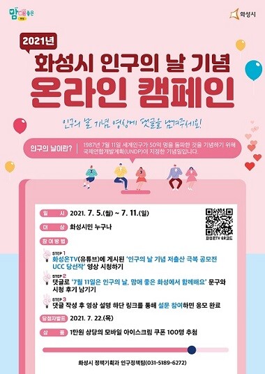 [이코노미세계] 화성시가 인구의 날을 맞아 5일부터 11일까지 온라인 캠페인을 벌인다.