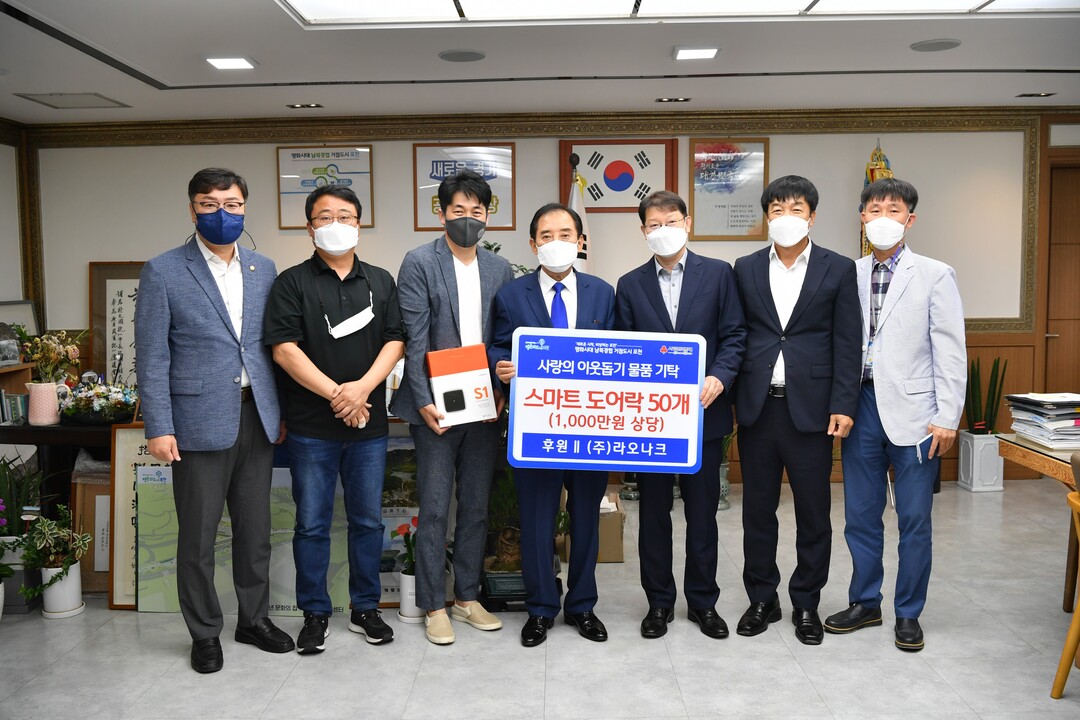 [이코노미세계] 포천시는 지난 6일 서울 금천구 소재의 ㈜라오나크가 주택 보완에 취약한 홀몸노인 및 저소득 모자[母子]가정 지원을 위해 1천만 원 상당의 스마트 도어락을 사회복지공동모금회에 기탁했다고 밝혔다.