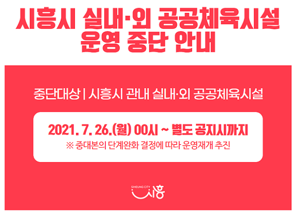 [이코노미세계] 시흥시가 26일부터 관내 실내ㆍ외 체육시설 운영을 전면 중단한다.