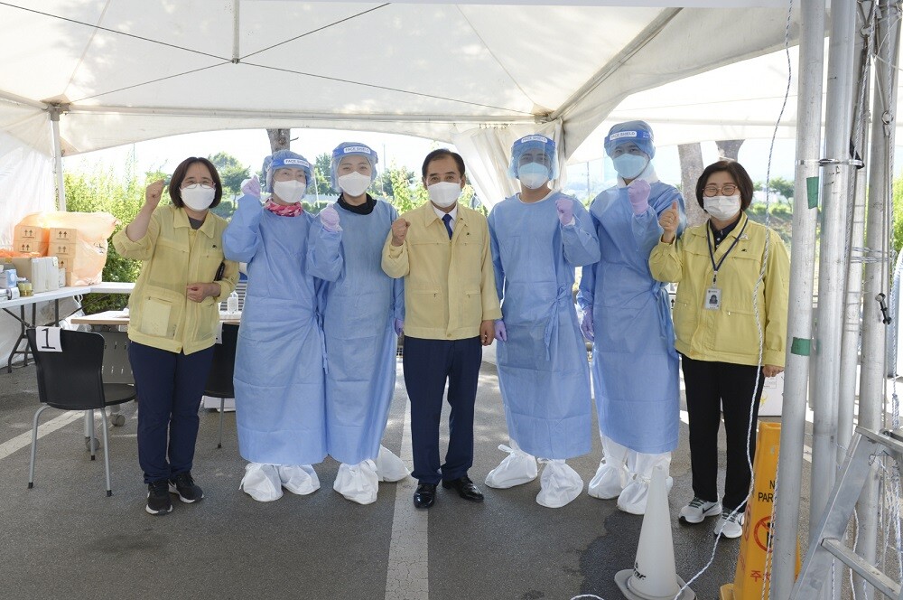박윤국 포천시장은 지난 23일 코로나19 예방접종센터를 직접 방문해 코로나와 무더위에 지쳐 있는 관계자들의 노고를 격려하며 “여러분들의 소중한 땀방울이 시민들의 건강과 일상을 하루 빨리 되돌릴 수 있는 지름길이라는 사명감을 가지고 맡은바 임무에 최선을 다해 달라.”고 당부의 말을 전했다.