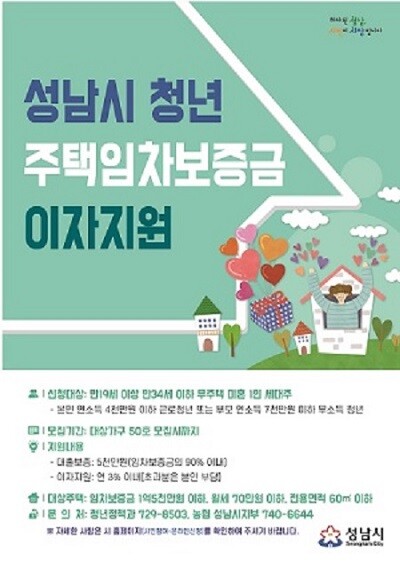 지원받으려면 성남시 홈페이지(시민참여→온라인 신청→청년주택임차보증금이자지원)를 통해 온라인 신청하면 된다.