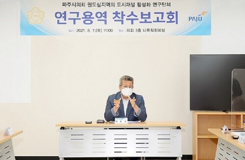[이코노미세계] 파주시의회 의원연구단체인 원도심지역의 도시재생활성화 연구단체가 지난 7일 시의회에서 ‘원도심지역의 활성화 방안 연구용역 착수보고회’를 개최했다.