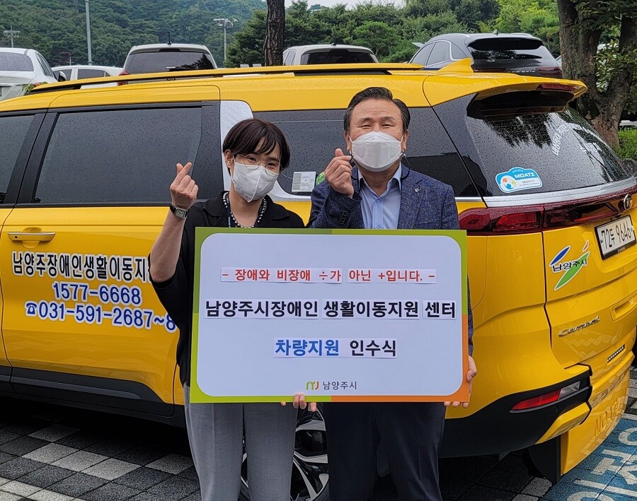 [이코노미세계] 남양주시는 지난 23일에 열린 인수식에서 장애인들의 생활이동권 향상을 위해 남양주장애인생활이동지원센터에 저상슬로프차량 2대를 교체하도록 지원했다고 밝혔다.