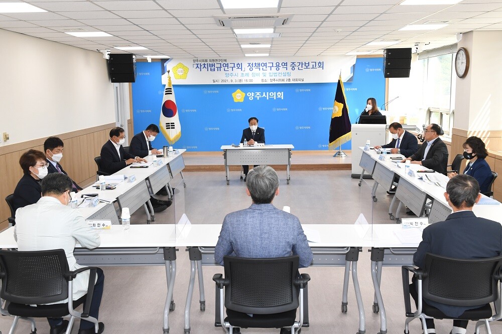 [이코노미세계] 양주시의회 의원연구단체 ‘자치법규연구회'가 지난 3일 시의회 대회의실에서 정책연구용역 중간보고회를 개최했다.