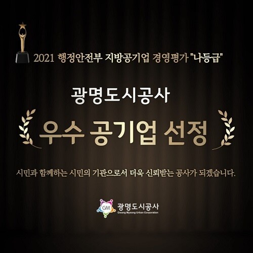 [이코노미세계] 행정안전부는 2021년(2020년 경영실적) 우수한 지방공기업 32곳을 지난 5일 발표하였고, 광명도시공사는 경영평가결과‘나등급’을 받아 우수공기업으로 선정되었다.