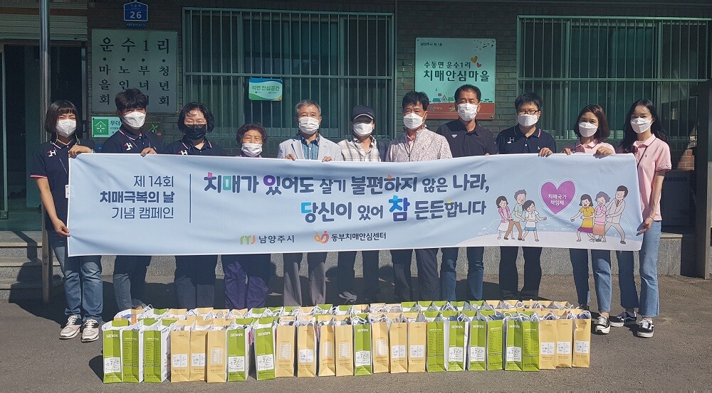 캠페인 내용은 코로나19 확산 방지 및 사회적 거리두기 실천에 따라 ▲화도·수동 권역 치매극복의 날 캠페인 포스터 및 현수막 게시 ▲SNS(동부치매안심센터 밴드)에 홍보글 게시 ▲치매안심마을 홍보 물품 및 방역물품 비대면 전달 ▲화도·수동·호평·평내 행정복지센터 홍보 물품 전달 ▲치매안심센터 내소 민원인 대상 홍보 물품 배부 및 사업(치매조기검진, 치매상담콜센터, 치매예방수칙 등) 홍보 등으로 진행됐다.