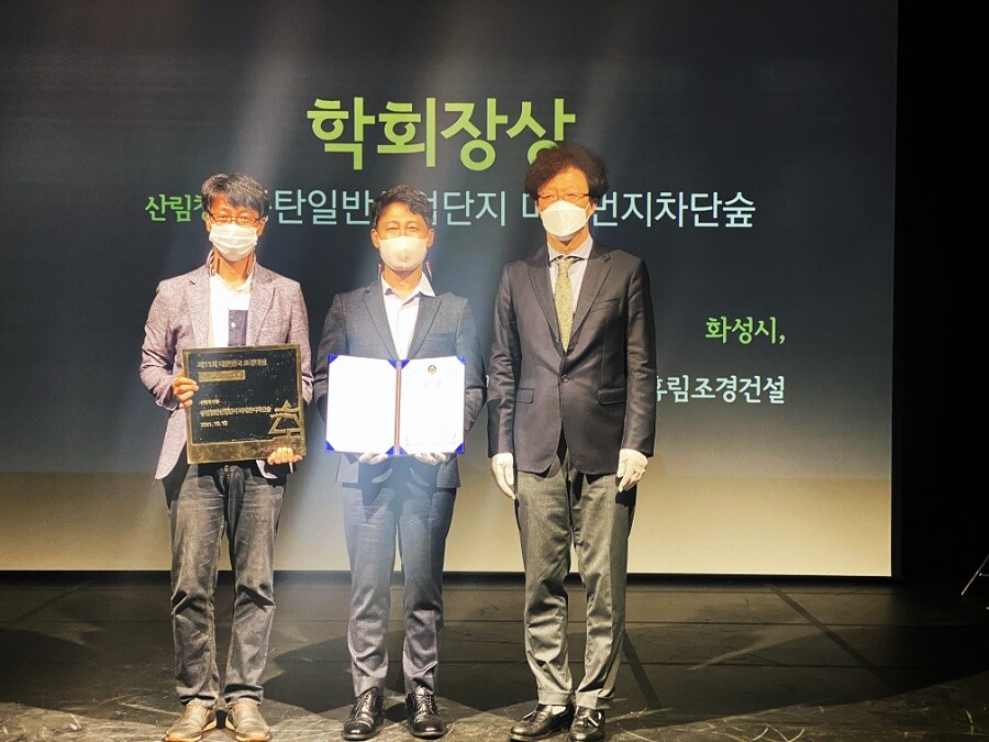 [이코노미세계] 화성시 동탄일반산업단지 미세먼지 차단숲이 12일 서울 문화비축기지에서 열린 ‘제11회 대한민국 조경대상’시상식에서 ‘산림청부문 한국조경학회장상’을 수상했다.