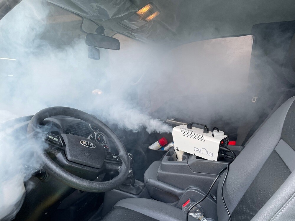 셀프방역존에는 연무기와 소독약품 등이 비치되어 주차장을 이용하는 개인차량들이 자율적으로 차량 내부를 소독할 수 있으며, 손소독제와 체온계를 활용해 개인위생 관리도 할 수 있다.