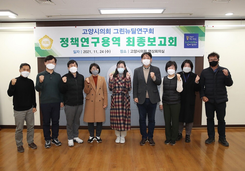 [이코노미세계] 고양시의회 의원 연구단체인 자치법규연구회(회장 심홍순), 그린뉴딜연구회(회장 박한기), 동물복지정책연구회(회장 손동숙), 도시브랜드연구회(회장 윤용석), 문화관광 및 공간혁신연구회(회장 김수환)가 11월 22일 부터 11월 25일까지 4일 간 의회 영상회의실에서 최종보고회를 열고 5개월 간의 연구 활동을 마무리했다.