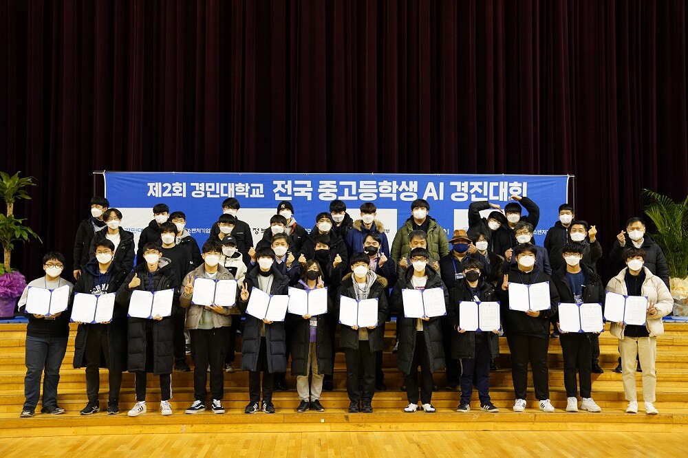 [이코노미세계] ‘사람을 키우는 ’경민대학교(총장 이연신)가 18일 중소벤처기업부 및 의정부시의 후원으로 “제2회 경민대학교 전국 중고등학생 AI경진대회”를 경민대기념관에서 방역수칙을 준수하면서 개최했다.