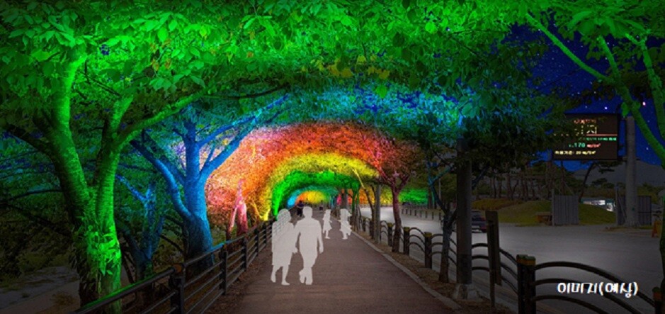 시에 따르면 덕풍3교~덕풍교 사이의 870m 구간에 수목 LED(발광다이오드) 투광등을 설치해 벚꽃에 색을 입힌다. 특히 덕풍6교~덕풍교 사이 구간은 벚꽃나무가 울창해 형형색색의 벚꽃 터널을 조성할 계획이다. 이번 공사는 3월에 시작해 5월에 준공할 예정이다. 공사비 2억원은 민관협치형 주민참여예산으로 마련했다.