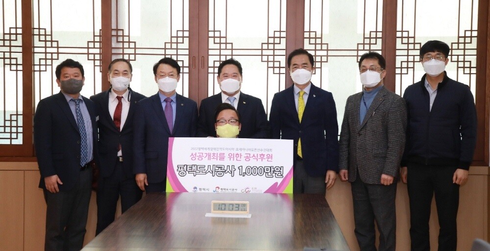 [이코노미세계] 평택도시공사(사장 김재수)는 2일 평택시청 대외협력실에서 성공적인 2022평택세계장애인역도대회 개최를 위한 후원금 1,000만원을 기탁했다.