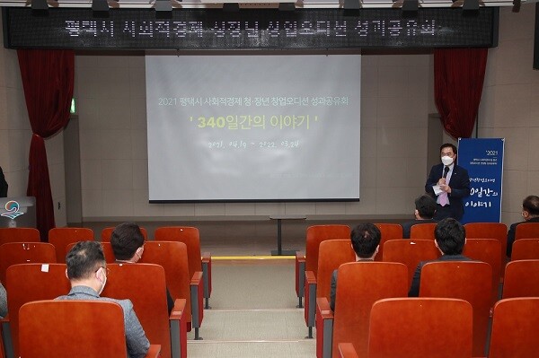 [이코노미세계] ‘평택시 사회적경제 청장년 창업오디션’을 통해 선발된 기업의 대표 등이 참석한 성과 공유회가 지난 24일 배다리 도서관에서 열렸다.