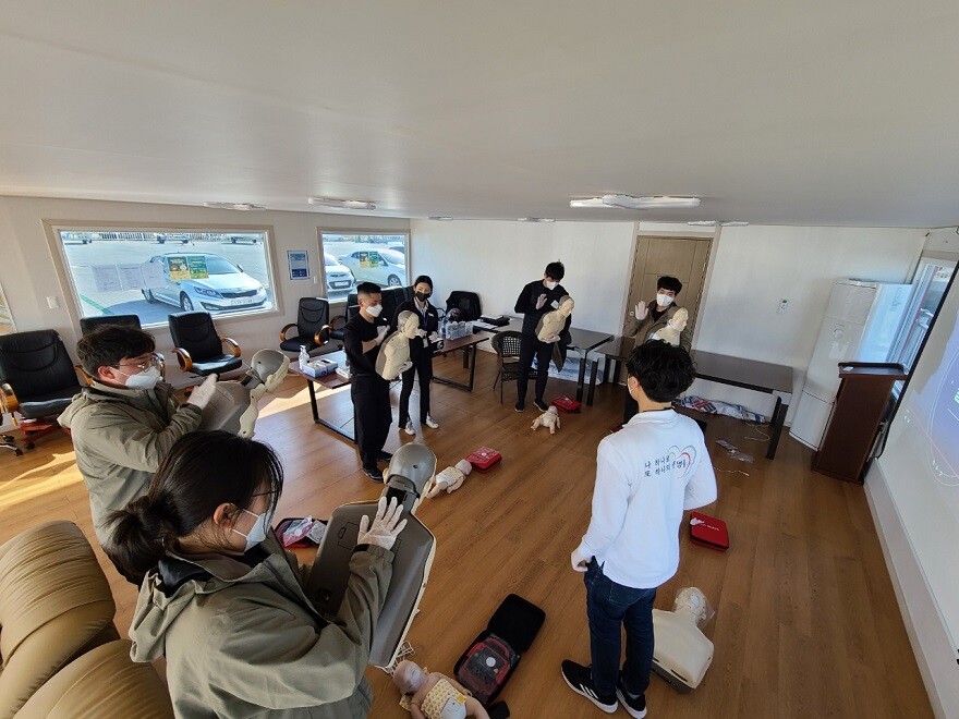 세부 프로그램으로는 ▲심장정지 인지 및 호흡확인, ▲심폐소생술(성인·소아 및 영아 대상), ▲심장충격기 사용법, ▲기도폐쇄 처지 등 이론과 실무교육으로 이뤄졌다.