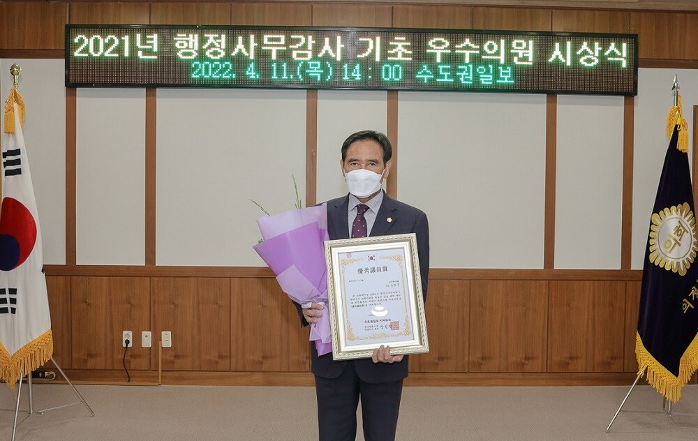 [이코노미세계] 의정부시의회 오범구 의장은 7일 수도권일보사 주관 「2021년 행정사무감사 기초우수의원 시상식」에서 우수의원상을 받았다.