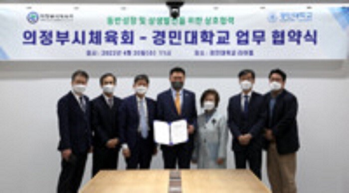 [이코노미세계] 경민대학교(총장 이연신)와 의정부시체육회(회장 이명철)은 4월 20일 경민대학교 김환철 산학협력단장을 비롯한 보직교수 및 의정부시체육회 이명철 회장과 체육회 임원들이 참석한 가운데, 지역사회 동반성장 및 상생발전을 위한 상호협력 업무협약(MOU)을 체결했다.
