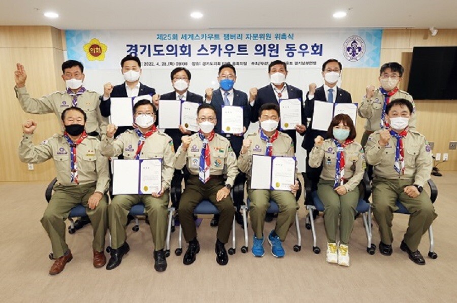 [이코노미세계] 경기도의회 스카우트 의원 동우회 「제25회 세계스카우트 잼버리 자문위원 위촉식」이 한국스카우트 경기남부연맹 주관으로 28일(목) 경기도의회 중회의실에서 진행됐다.