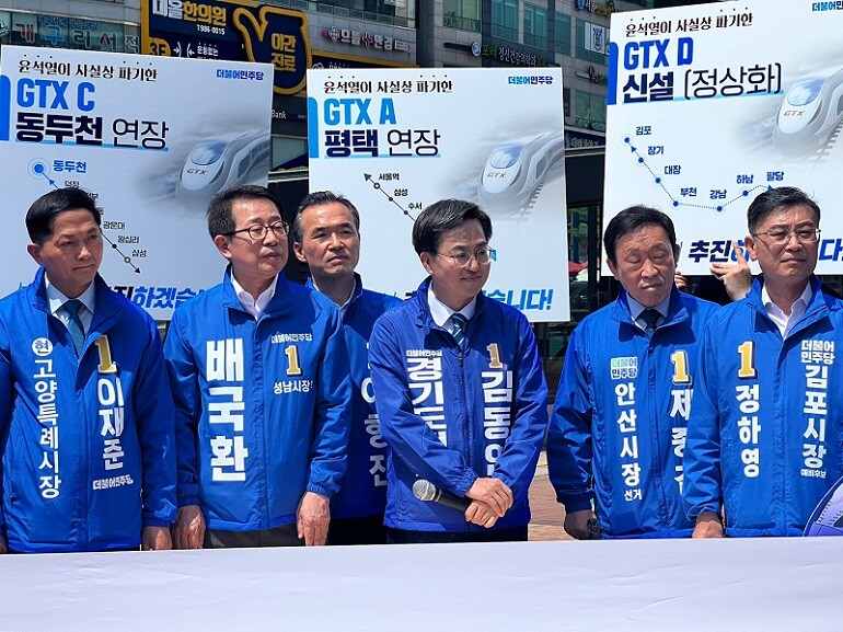 협약식에는 김동연 경기도지사 후보를 포함하여 GTX 노선이 지나가는 민주당 25개 자치단체장 후보들이 함께했다.
