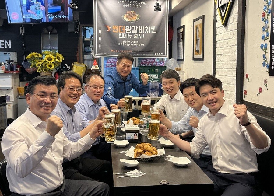또한 14일 저녁에는 김원기 후보와 4명의 공동본부장, 그리고 선대위 공동위원장인 김민철, 오영환 국회의원이 의정부시 평화로 인근 치킨집에 함께 모여 지방선거 승리를 다짐하는 ‘원팀 필승 호프 타임’을 가졌다고도 밝혔다.