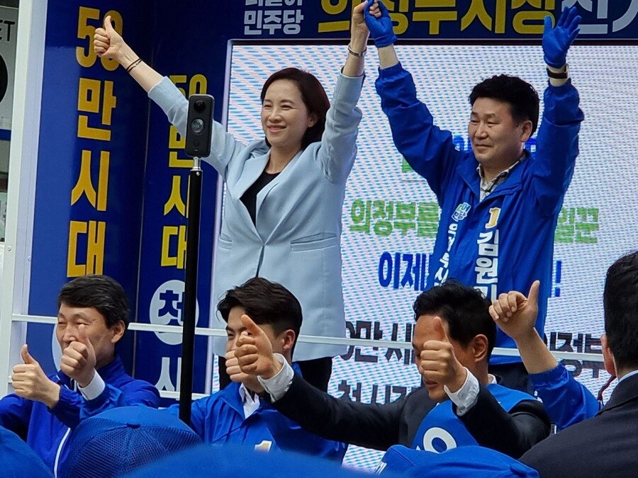정세균 전 국무총리는 가능역 서부광장에서 김원기 의정부시장 후보를 비롯한 의정부 지역 후보자들과 김민철, 오영환 국회의원이 참석하고, 시민들이 운집한 가운데 지원유세를 진행했다.