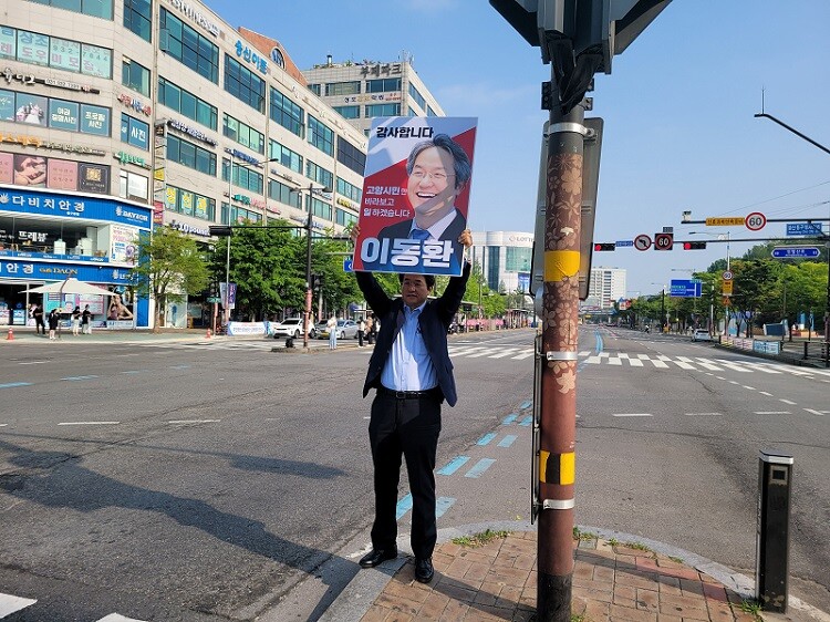 이 당선인은 당선 직후 지난 2일 저녁부터 제작한 당선사례 피켓을 들고 3호선 및 경의중앙선 역사를 중심으로 내ㆍ외부에서 출퇴근 시민들에게 감사 인사를 드렸다.