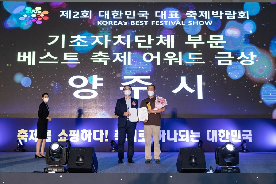 [이코노미세계] 양주시(시장 권한대행 김종석)가 지난 3일부터 5일까지 부산 벡스코에서 열린 제2회 대한민국 대표축제 박람회에서 기초지자체 부문 대한민국 베스트 축제 어워드 금상을 수상했다고 밝혔다.