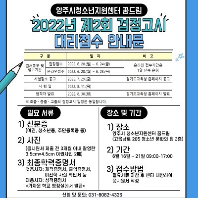 [이코노미세계] 양주시양주시청소년지원센터 꿈드림은 학교 밖 청소년들을 위한 2022년 제2회 초중고 졸업학력 검정고시 응시 접수 대행서비스를 지원한다.