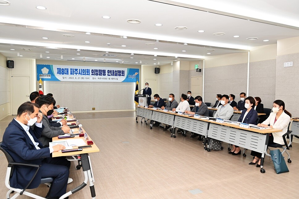 이번 설명회는 7월 1일부터 시작하는 제8대 파주시의회 출범을 앞두고 당선자 상호 간의 상견례를 비롯하여 당선자들이 의정활동을 원활하게 수행할 수 있도록 의회 운영 전반적인 사항에 대한 설명 및 필요한 각종 자료 등을 제공함으로써 향후 의정활동에 도움을 주고자 마련했다.