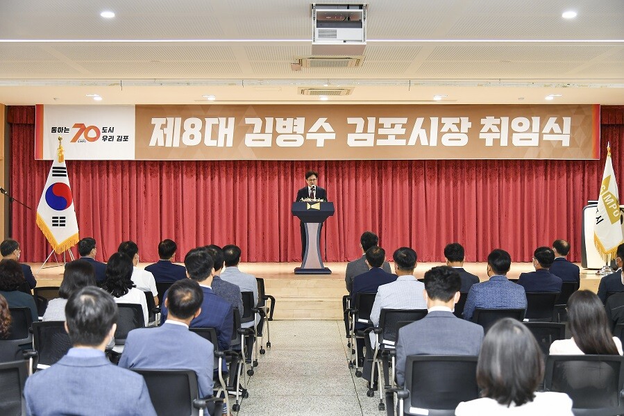 김병수 김포시장은 취임사를 통해 “ 『민선 8기 통(通)하는 김포』를 향한 커다란 행보는 ‘교통 해소’와 ‘시민 소통’이라는 목표 아래 이뤄질 것이다”면서 “이를 위해 교통이라는 혈관을 뚫고 시민의 행복한 삶을 시정의 제일 가치로 삼겠다.”고 포부를 밝혔다.