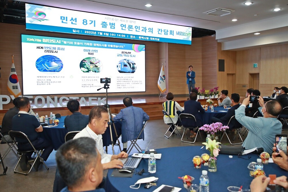 정장선 평택시장과 최원용 부시장, 실․국․소장 등 간부 공무원 및 언론인이 참석한 가운데 언론인과의 상견례, 민선8기 중점 추진방향 브리핑, 질의응답 순으로 진행됐다.