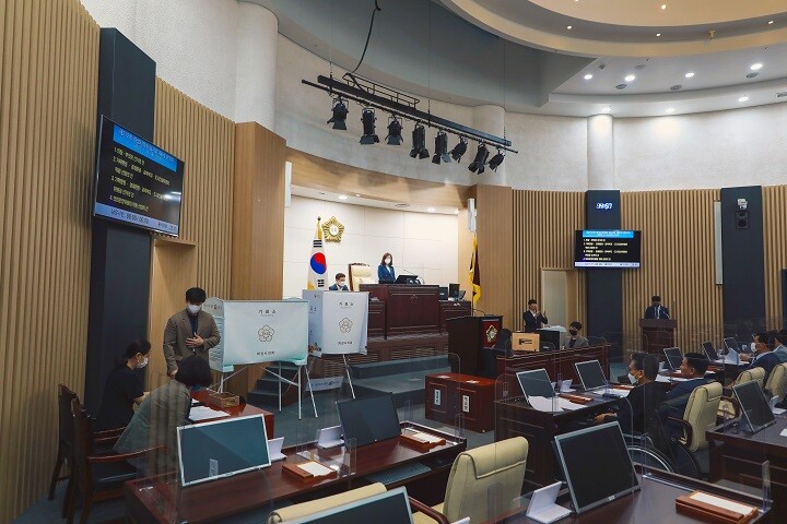 당선인들은 7월 14일 14시에 열린 제6차 본회의에서 투표를 통하여 김경희 의장(더불어민주당)과 오문섭 부의장(국민의힘)을 각각 선출했다.