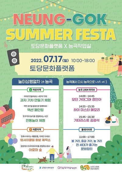 ‘능곡 Summer Festa'와 관련된 자세한 내용은 토당문화플랫폼 공식 블로그게시물에서 확인할 수 있다.