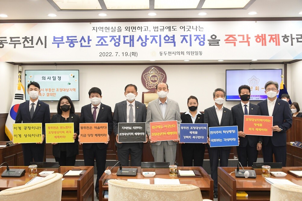 {이코노미세계] 동두천시의회(의장 김승호)는 19일, 동두천시에 대한 부동산 조정대상지역 지정을 즉각 해제하라는 결의문을 발표했다.