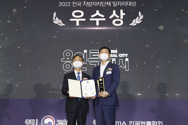 [이코노미세계] 용인특례시가 지난 21일 정부세종컨벤션센터에서 열린 '2022년 전국 지방자치단체 일자리 대상'에서 일자리 공시제 부문 우수상을 수상했다.